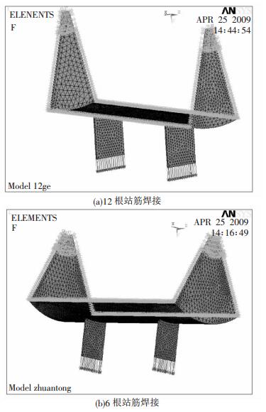 | 图 7 工况2下12根站筋与6根时的应力分布图 |