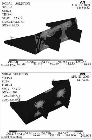 | 图 6 工况1下12根站筋与6根时的应力分布图 |