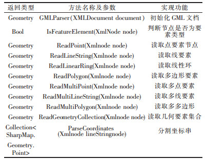 | 表 1 GMLParser类的主要属性方法 |