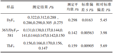 2.4 精密度试验用上述试验选定的最佳提取条件,以DyF3,TbF3样品进行精密度试验结果见表 7.