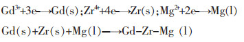 为提高合金化效果及其元素的回收率,实践中一般采用锆镁、稀土镁中间合金加入.目前制备Mg-Zr中间合金的方法主要有锆粉与镁对掺、镁还原ZrCl4和镁还原K2ZrF6等方法,其均存在偏析严重,夹渣,成本较高等不足;而通过氯化物、氟化物熔盐电解能制备Mg-Y、Mg-Nd、Mg-Ce和Mg-Ymm、Mg-Ndmm、Mg-Cemm等[4-8],本研究拟采用氟化物熔盐共电沉积稀土镁中间合金工艺,添加ZrO2到Gd2O3、MgO混合物料中,通过工艺的优化,一步法制备含Zr较高的Gd-Zr-Mg中间合金.