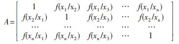根据二元相对比较矩阵M中的各元素,可进一步计算出“相对函数” “F(XI/XJ)”, 其定义为: