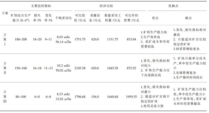 3种采矿方法的各项技术经济比较如表 1.