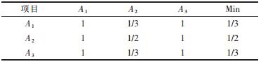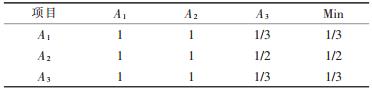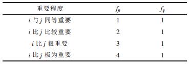 采用指标二元对比排序法求隶属度.将2个指标按其相对重要性程度划分成5个等级,采用4级标度法,按表 2的赋值方法请有经验的专家赋值.