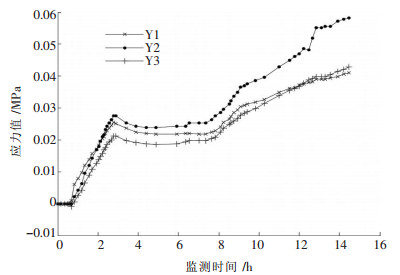 | 图 3 Y1~Y3压力盒监测值随时间的变化 |