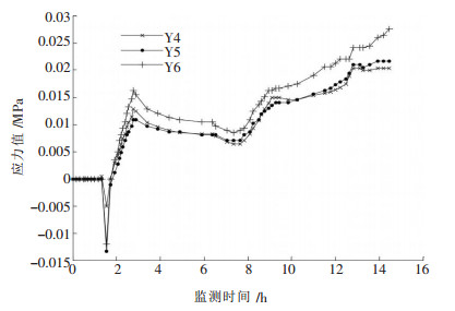 | 图 4 Y4~Y6压力盒监测值随时间的变化 |