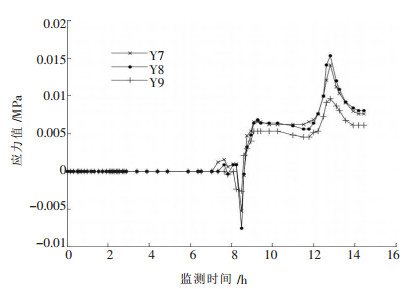 | 图 5 Y7~Y9压力盒监测值随时间的变化 |