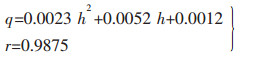 对同一高度最大应力值取平均,并进行回归分析,得到q随h分布的拟合公式(1).