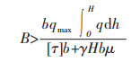 式(2)、式(3)、式(4)中:τ为挡墙产生的抗剪强度;∑H为作用在墙体的总水平力;∑V为作用在墙体的总竖直力;B为挡墙厚度;b为挡墙宽度;μ为砌体材料摩擦系数;[τ]为墙体采用水泥砂浆砌筑自身的最大抗剪强度;qmax为挡墙底部受压值;H为挡墙高度;γ为挡墙容重.