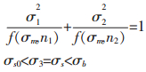 如果两向拉伸硬化指数相等,即f′1=n1=f′2=n2,则强化椭球面变成回转椭球面,强化状态对称于oσ3轴.