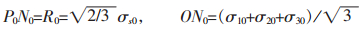 欲检验式(10)与式(11)的可靠程度,将弹性锥面边界点P0(σ10,σ20,σ30)代入式(11)得: