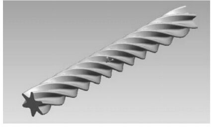多头螺旋管作为近几年来兴起的新型高效换热元件,已然成为传热行业研究的热点,相比对称型良好的传统换热管材,如光管、翅片管等,螺旋管内的流体在进行管内外对流换热的过程中,涉及一个更为复杂的旋转紊流的三维流动[1].考虑到多头螺旋管复杂、特殊的结构及换热过程流体复杂的流动状态,文中选用数值模拟的方法对其换热过程进行研究,通过模拟计算,得到螺旋管内流体紊流流动过程中的温度场与流场分布,为其强化换热的研究提供理论依据.