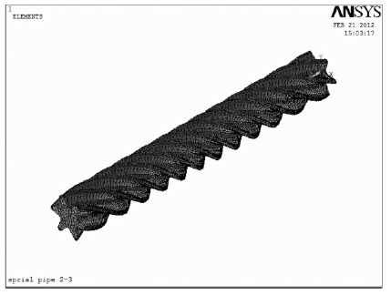 1 换热过程的有限元模型实体模型是建立有限元模型的基础,考虑到多头螺旋管非轴对称的结构特性,文中选用了三维实体建模软件Pro/E 来建立多头螺旋管的模型,然后以特定格式导入到ANSYS 中进行数值模拟分析.表 1示出了实验管材的基本结构参数.