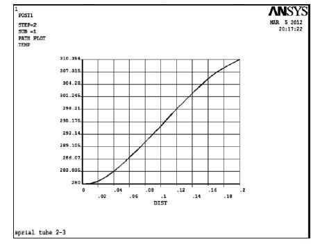 | 图 6 螺旋管内流体的温度变化 |