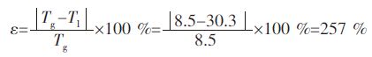 图 5和图 6 将温度分布以数据的形式反映在数学曲线上,其中横坐标代表从入口端到出口端的管的轴向长度,纵坐标代表对应管长截面上的温度值.设温升的相对提高为ε,Tg为光管中流体从入口端到出口端的温升,Tl为螺旋管内流体入口端与出口端的温差[6].则根据曲线中的数据不难得到: