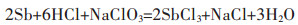 未氧化的铋、锑、铜、银则在氧化剂作用下与盐酸作用,反应式为: