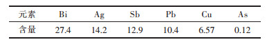 图 1 XRD分析结果可以看出,铋、锑、铜、铅大部分是以氧化物形式存在,少量以合金形式存在,银以单质或合金形式存在.