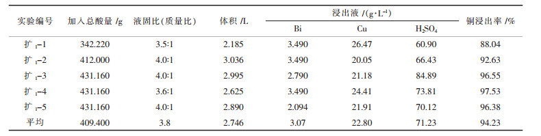 | 表4 循环浸出铜扩大实验结果分析表 |