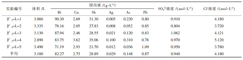 | 表5 循环浸出铋扩大实验浸出液结果分析表 |