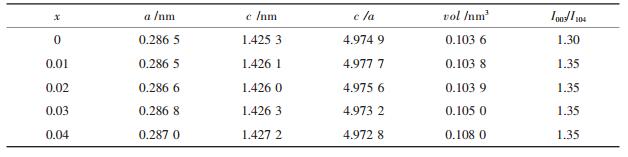 | 表1 LLi(Ni1/3Co1/3Mn1/3)1-xMgxO2的晶胞参数和结构参数 |