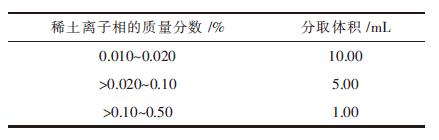 混合稀土标准溶液:分别移取1mL15种单一稀土氧化物标准溶液(1000μg/mL)于1000mL容量瓶中,用1%硝酸溶液定容.此时溶液中含各单一稀土氧化物浓度为1μg/mL.