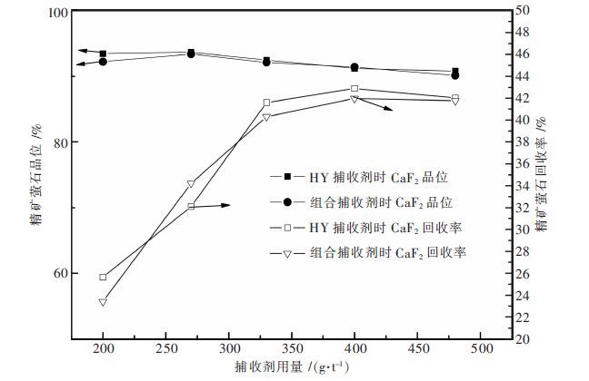 | 图 2 捕收剂 HY 和组合捕收剂用量对比试验结果 |