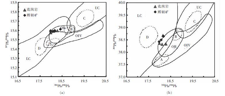 | 表2 熊家山钼矿床中花岗岩和辉钼矿中的铅同位素组成 |