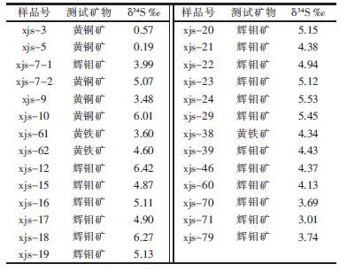 | 表1 熊家山钼矿床硫同位素组成 |