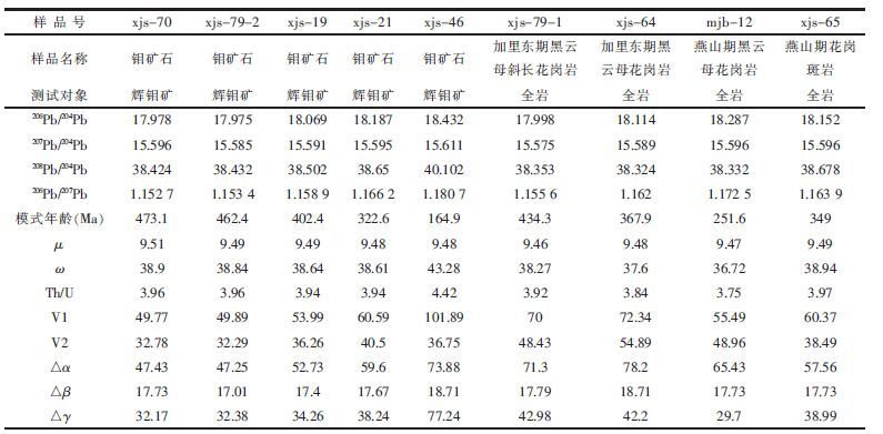 熊家山钼矿床矿石和相关岩体铅同位素分析测试及相关参数计算结果列于表 2,其Pb同位素特征分述如下;