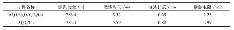 | 表2 直流20 V/20 A 条件下触点材料的燃弧特征平均值 |