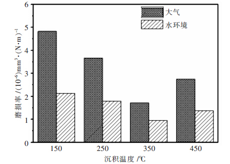 | 图 6 不同沉积温度下CrCN涂层在大气和水环境下的磨损率 |