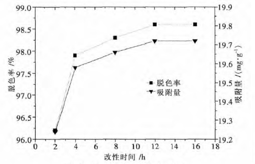 | 图 3 改性时间对脱色的影响 Fig. 3 Effect of modification time on decolorization |