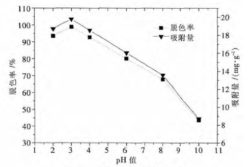 | 图 5 pH 值对脱色效果的影响 Fig. 5 Effect of pH on decolorization |