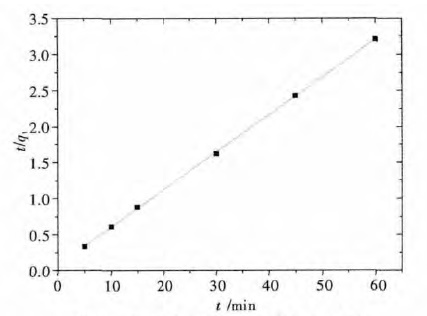 | 图 8 酸性湖蓝A 准二级动力学模型 Fig. 8 Pseudo-second-order kinetic model of acid turquoise blue A |