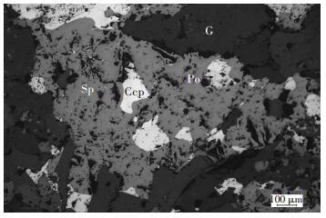 | 图 1 黄铜矿和闪锌矿在原矿石中的分布特征 Fig. 1 Distribution characteristic chalcopynte (Ccp) and sphalerite (Sp) in raw ore |