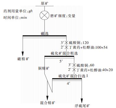| 图 4 磨矿细度条件试验流程 Fig. 4 Process flow of conditional test for grinding |