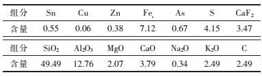 3 结论1)云南某大型铜锌锡矿属于典型的伴生多种硫化物的矽卡岩型锡矿山,由于伴生元素Cu、Zn品位较低,一直以来并未开展伴生硫化矿物的综合回收研究,造成伴生元素的流失,同时由于原有的硫化矿浮选作业流程及药剂制度的不合理,造成锡重选入选物料S、As含量较高,重选所得到的锡精矿有害杂质元素超标,所以为了解决这一问题,需在工艺矿物学研究的基础上对硫化矿浮选流程进行优化;