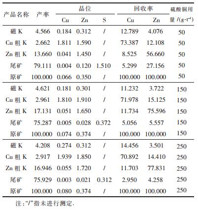 | 表4 硫酸铜用量条件试验结果/% Table 4 Results of condition test for copper sulfate dosage/% |