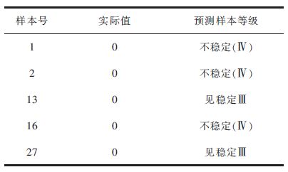 | 表4 预测样本等级与实际边坡状态比较 Table 4 Comparison of forecast sample grade and actual slope state |