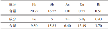 2 仿真基本数据 2.1 炉料成分某冶炼厂提供的脆硫铅锑精矿成分如表 1所列.