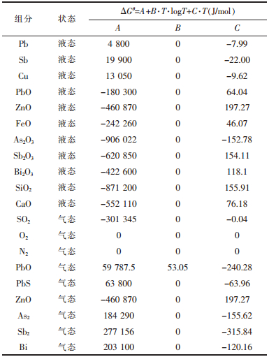 4 结论1)基于最小吉布斯自由能原理,建立脆硫铅锑矿闪速熔炼多相平衡数学模型,为研究脆硫铅锑矿闪速熔炼热力学提供一种有效方法.