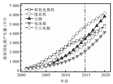 | 图 2 废家用电器产生量 Fig. 2 Generation amount of wasted household appliances |