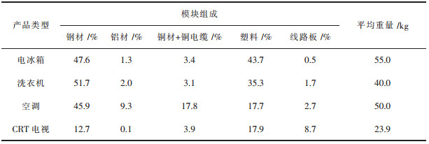 | 表2 主要家用电器模块组成和平均重量 Table 2 Module composition and average weight of main household appliances |