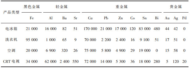 | 图 4 家用电器废弃物有价金属含量 Fig. 4 Valuble metal content of wasted household appliances |
