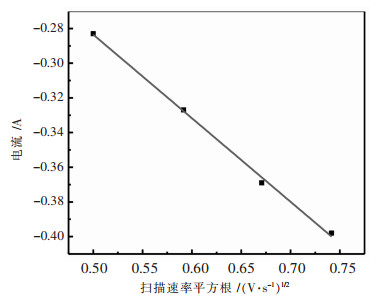 扫描速率平方根和还原峰b的峰电流的关系如图 6所示.