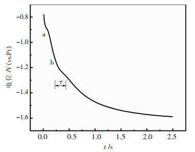 2.2 计时电位法在1 373 K温度下, 对熔盐体系进行恒电流计时电位曲线的扫描,如图 7.