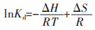 | 图 2 lnKd与1/T的关系 Fig. 2 Relationship between lnKd and 1/T |