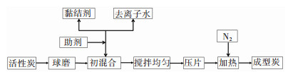 | 图 1 活性炭成型工艺流程 Fig. 1 Scheme of preparation of shaped activated carbon |