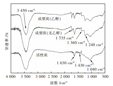| 图 4 不同乙醇用量制备的成型炭红外谱图 Fig. 4 Infrared spectrum of shaped activated carbons with different amounts of alcohol |