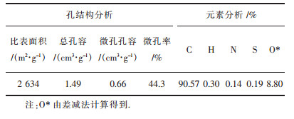 | 表 2 石油焦基活性炭孔结构特性和元素分析 Table 2 Structure characteristics and ultimate analysis of petroleum coke based activated carbon |